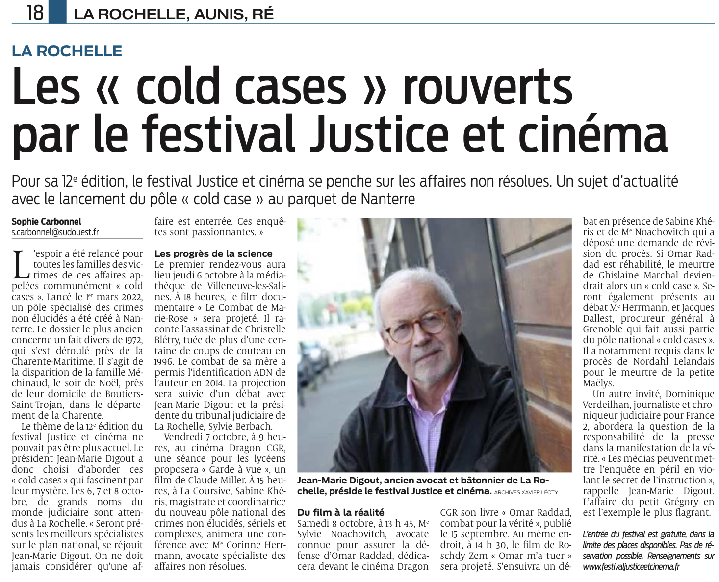 Pour sa 12e édition, le festival Justice et cinéma se penche sur les affaires non résolues. Un sujet d’actualité avec le lancement du pôle « cold case » au parquet de Nanterre.